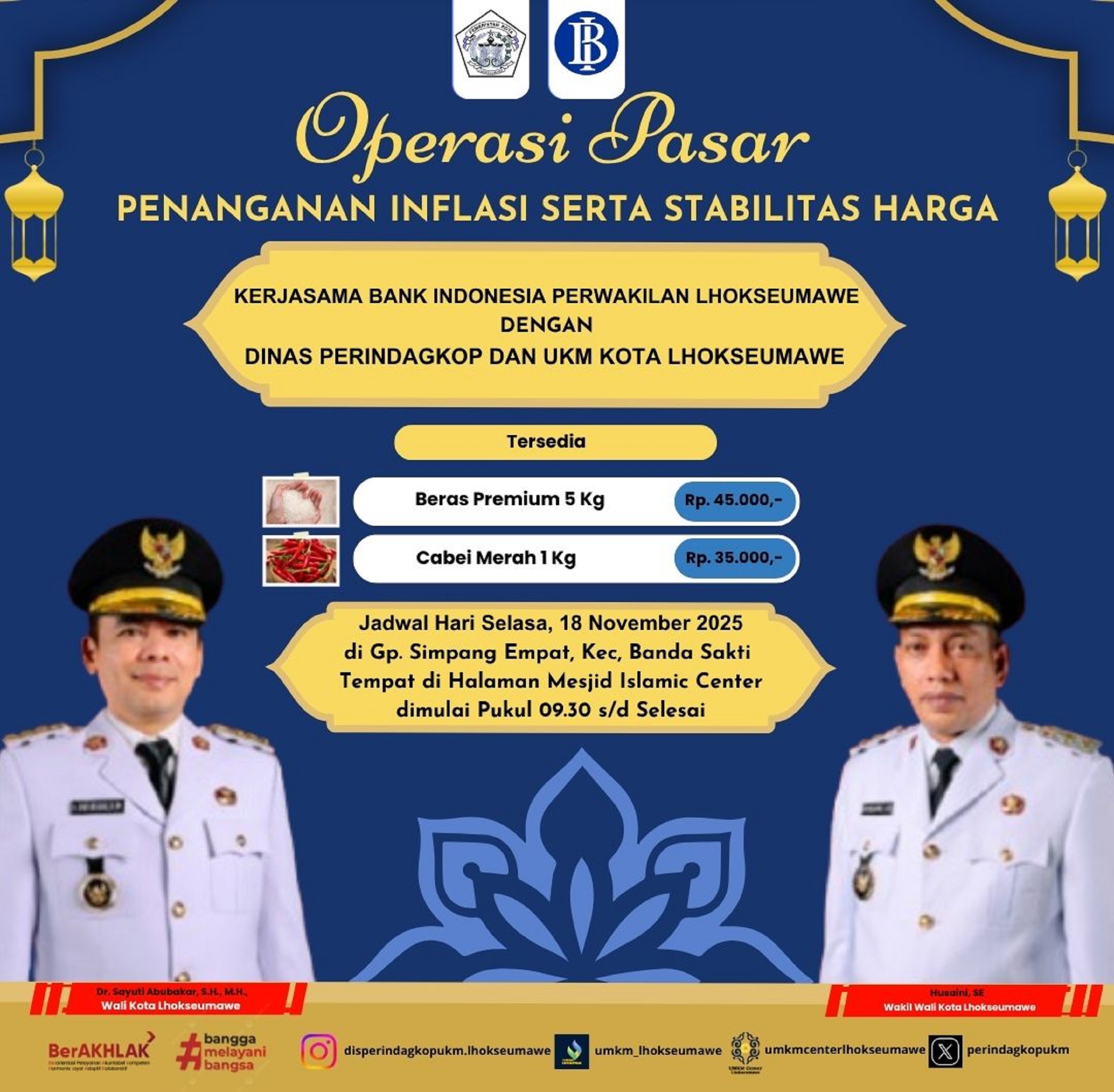 Kolaborasi BI dan Pemko Lhokseumawe Disperindagkop dan UKM Kota Lhokseumawe Tekan Inflasi Lewat Operasi Pasar