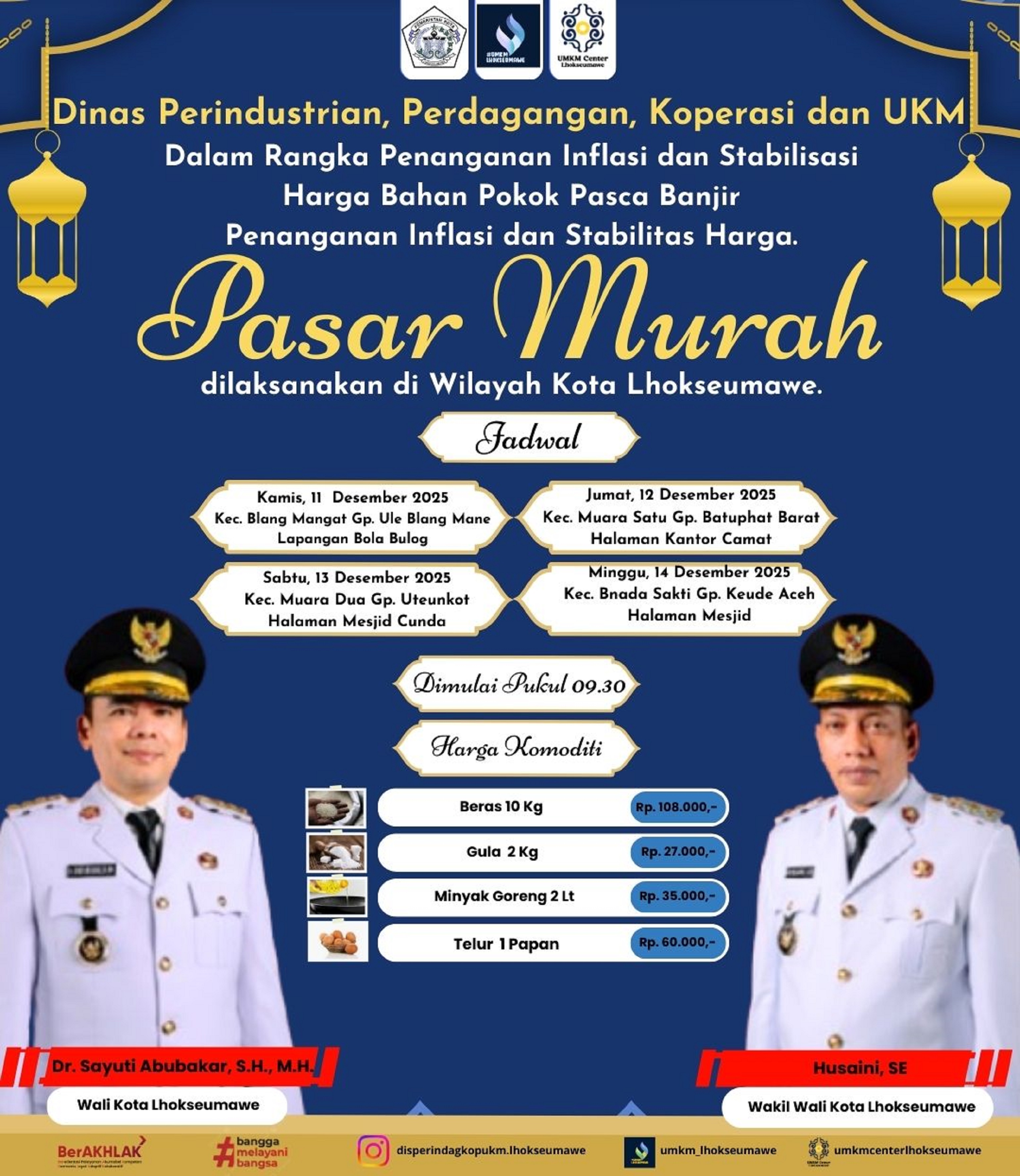Pemko Lhokseumawe dan Dinas Perindagkop Kota Lhokseumawe Melakukan Peninjauan Pelaksanaan Pasar Murah di Lapangan Bulog Punteut