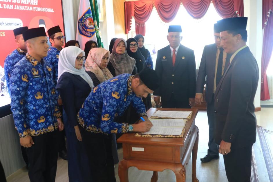 Sekda Lhokseumawe Lantik 20 Pejabat Administrator, Pengawas, dan Fungsional Tertentu