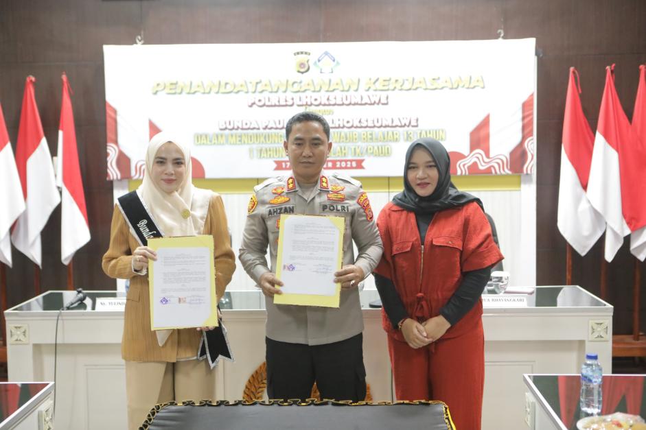 Bunda PAUD Kota Lhokseumawe dan Kapolres Tandatangani Nota Kesepakatan Bersama Pembinaan Anak Usia Dini